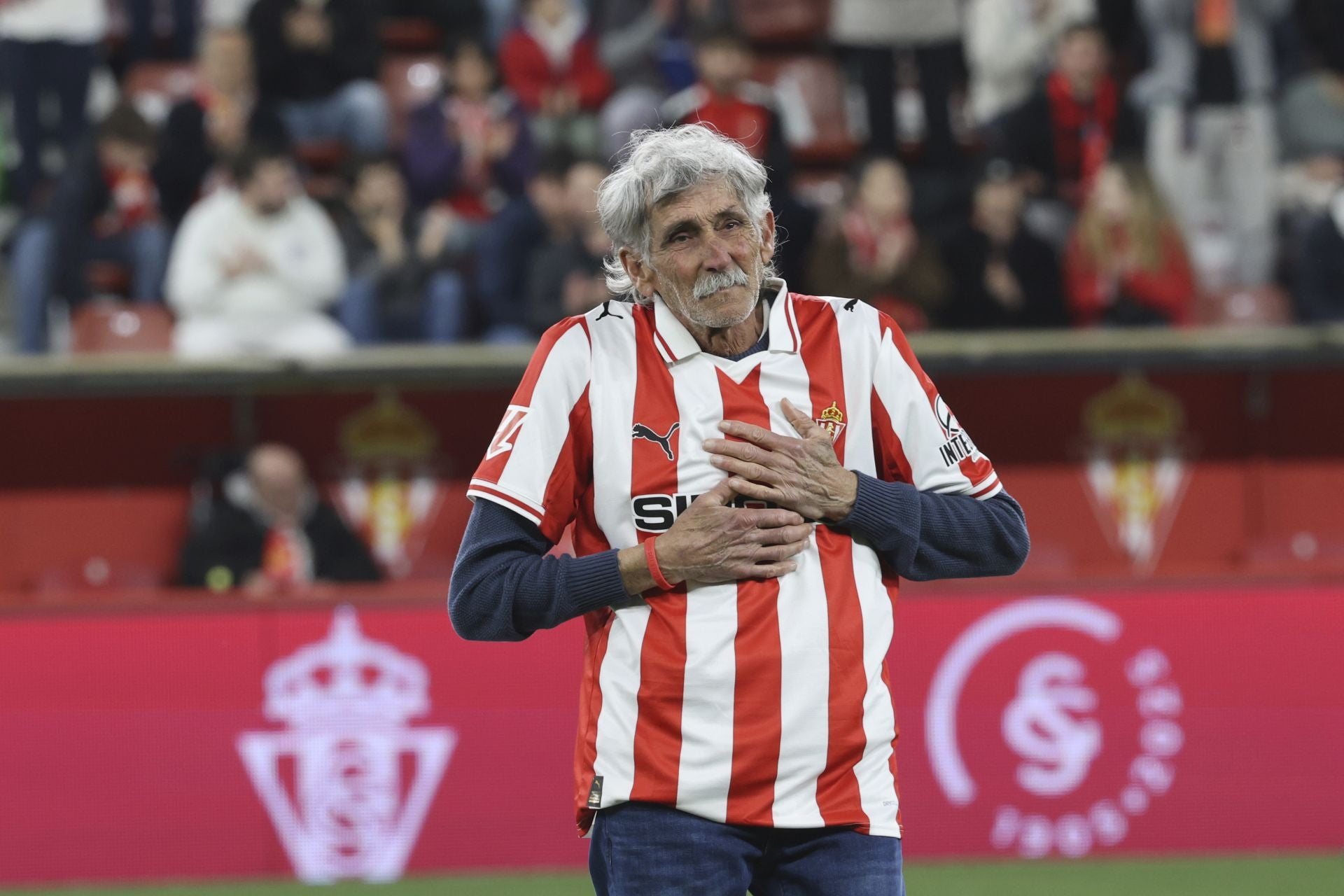 La imagen del domingo de Manolo Mesa (San Roque, Cádiz, 1952) en El Molinón es un poema en sí misma; en especial, el instante captado por el fotógrafo Damián Arienza cuando El Quillo, Siete Pulmones, El Chico de la Mochila se lleva sus dos manos al pecho en agradecimiento por la sentida ovación recibida mientras rompe a llorar. Mesa fue un jugador total. Vertical, rápido, hábil, con visión de juego, regate fácil y gol. Un medio-extremo de los de antes que jugó en el Sporting doce maravillosos años -de 1975 a 1987- compartiendo aquella alineación de leyenda que casi gana la Liga en la 1978-79: Castro, Redondo, Doria, Maceda, Cundi; Joaquín, Ciriaco, Mesa; Morán, Quini, Ferrero (y Uría). Ver aquel Sporting de niño es un recuerdo de esos que no se borran ni con piedra pómez. Afloran de Mesa tres recuerdos a bote pronto. Un tiro al larguero espectacular al Real Madrid casi desde el centro del campo. Uno de los partidazos de su vida en la última jornada de aquella liga que ganó la Real Sociedad en El Molinón. Si perdía la ganaba el Madrid y en Gijón había sed de venganza por la Liga robada. De modo que el equipo jugó al tran-tran, pero Mesa, profesional donde los haya, lo dio todo y marcó los dos goles del 2-1 que tuvo temblando a los donostiarras hasta que al final igualó Zamora. El tercer recuerdo es un gol que caso de anotarlo Mbappe, Yamal o Messi lo estarían repitiendo en la tele una y otra vez, pero lo marcó Mesa y no pasó de salir en el resumen del partido. Fue precisamente en Las Palmas, donde gastaremos nuestro nuevo cartucho este domingo. Castro (o Rivero, no recuerdas bien) se la pasó a Mesa junto al área y el Quillo empezó a regatear a unos y otros, fue avanzando, siguió regateando, entró en el área y acabó marcando tras sortear a todo el equipo amarillo. De anotarlo un galáctico nos habrían aburrido con ese gol. Pero lo metió Mesa, leyenda del mejor Sporting que jamás volveremos a conocer.